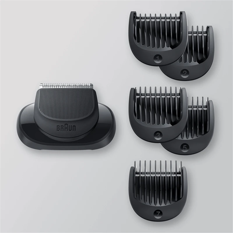 Faites un cadeau à vous-même et à votre rasoir en améliorant son efficacité ! La tondeuse barbe tête de rasoir de rechange Braun Series 5/6/7 BeardTrimmer vous offre différentes longueurs de peignes de coupe, de 1 à 7 mm, entre lesquelles vous pouvez facilement trouver celle qui convient à votre style.