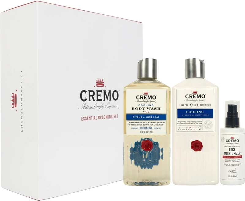 Le coffret de cosmétiques Cremo Essential Grooming Set contient tout ce qui est nécessaire pour un entretien parfait de votre barbe.