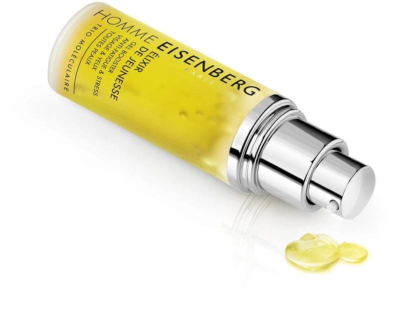 Une véritable dose d’énergie qui ravive visiblement la peau de votre visage ! Le gel hydratant léger Eisenberg Homme Élixir de Jeunesse rafraîchit agréablement la peau, élimine immédiatement les signes de fatigue, de stress et de décalage horaire tout en tonifiant le contour du visage.