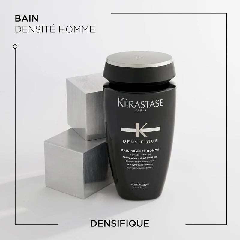 Des cheveux visiblement plus denses et un cuir chevelu plus sain. Avec le shampoing Kérastase Densifique Bain Densité Homme, les fibres capillaires sont renforcées pendant leur lavage et l’effet densifiant est immédiat. Vos cheveux et votre cuir chevelu sont parfaitement frais et en pleine forme.