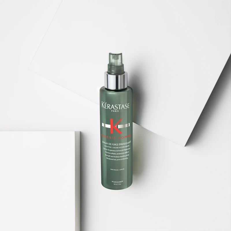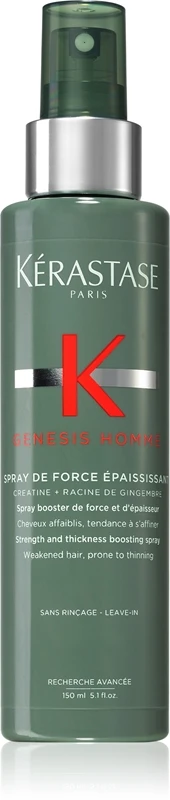 Dites définitivement adieu à vos cheveux fragiles en manque de densité. Le spray renforçant Kérastase Genesis Homme Spray de Force Épaississant enrichi en créatine et en racine de gingembre renforce la structure des fibres capillaires, tout en leur apportant de la texture et du volume. Votre coiffure sera beaucoup plus belle qu’auparavant.