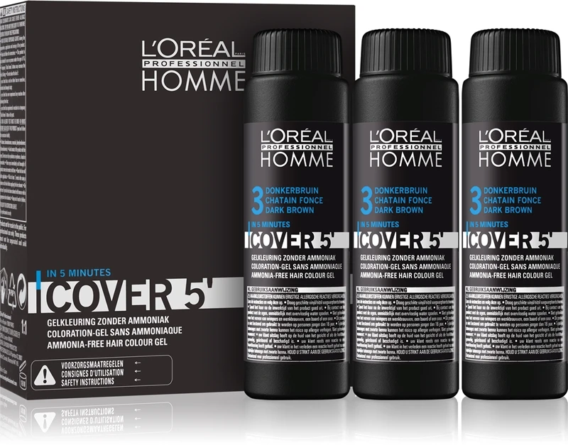 La préparation colorante cheveux pour homme L’Oréal Professionnel Homme Color Cover 5’ couvre les cheveux blancs et les chevelures poivre et sel de façon naturelle, sans changement trop radical.