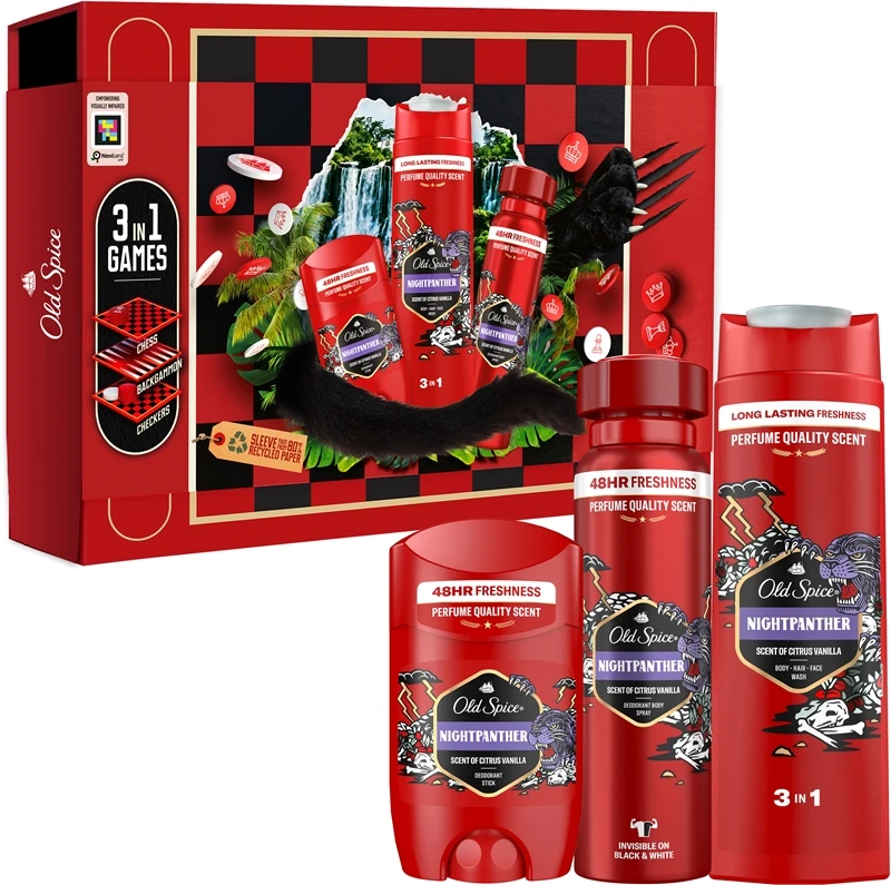 Faites plaisir avec un coffret cosmétique Old SpiceNightpanther Game Set dont les produits ont été spécialement conçus pour le soin du corps des hommes. Il enchantera tous les hommes qui aiment prendre soin de leur apparence.